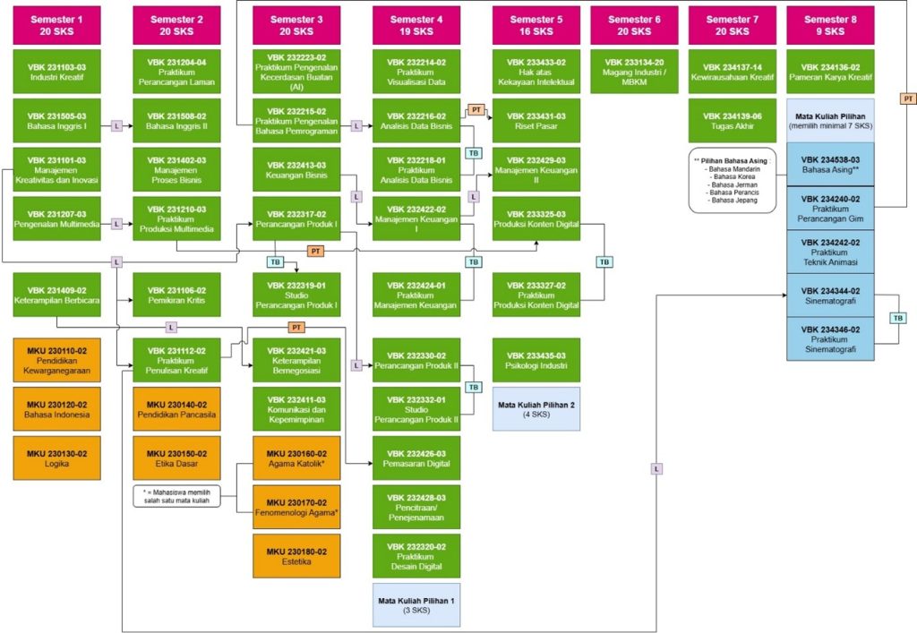 Kurikulum Program Studi Sarjana Terapan Bisnis Kreatif memiliki enam bahan kajian